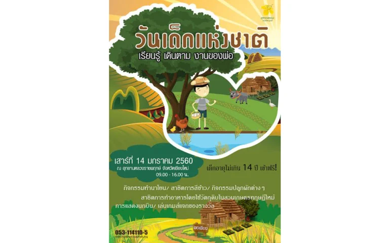 14 มกราคม 2560 เด็กเที่ยวฟรีที่อุทยานหลวงราชพฤกษ์ สนุกกับกิจกรรม “เรียนรู้ เดินตาม งานของพ่อ” yawaredJanuary 6, 2017