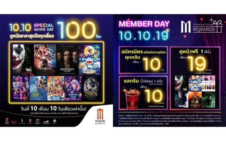 MajorCineplex ร่วมฉลอง Special Day!! วันที่ 10 เดือน 10 มอบความสุขกับการดูหนังในราคาสุดช็อค! เพียง 100 บาท yawaredOctober 9, 2019