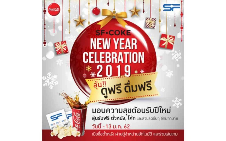 เอส เอฟ และโค้กร่วมฉลองเทศกาลปีใหม่ เพียงซื้อบัตรชมภาพยนตร์ หรือ ป๊อปคอร์นและเครื่องดื่ม ผ่านตู้จำหน่ายบัตรอัตโนมัติ รับสิทธิ์ร่วมสนุกกับกิจกรรม SF-Coke New Year Celebration ลุ้นรับรางวัลมากมาย จาก เอส เอฟ และ โค้ก ที่ SFCinema reviewchiangmaiJanuary 3, 2019