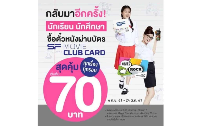 เอส เอฟ เอาใจนักเรียน นักศึกษา และผู้ถือบัตร SF MOVIE CLUB ประเภท STUDENT ชมภาพยนตร์ ทุกเรื่อง ทุกรอบ ทุกวัน ในราคาพิเศษเริ่มต้น 70 บาทต่อที่นั่ง ทั้งระบบปกติและระบบ 3D yawaredSeptember 13, 2018
