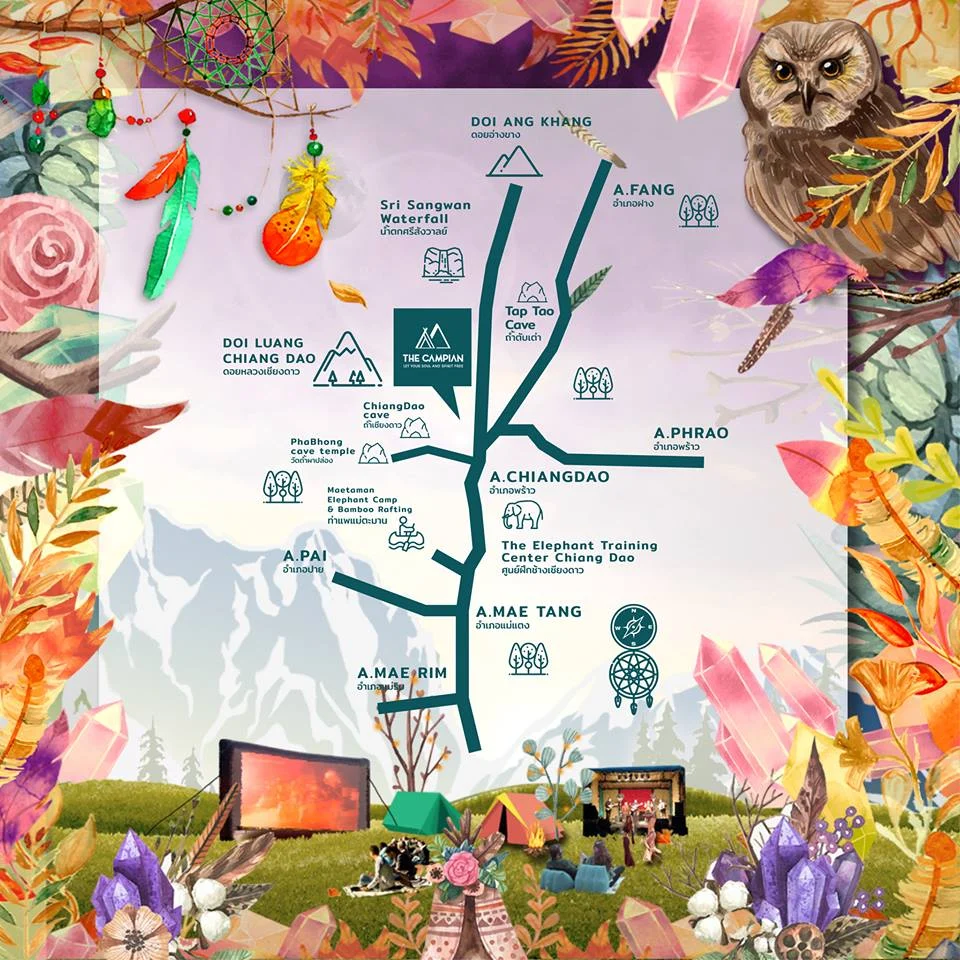 จากตัวเมืองเชียงใหม่ ขับไปตามถนนเส้น 107 เส้นเชียงใหม่-ฝาง ผ่านด่านตรวจเชียงดาว ตรงไปเรื่อยๆ ผ่านการไฟฟ้าส่วนภูมิภาค อ. เชียงดาว จะเจอสามแยกให้เลี้ยวไปทางซ้าย ตามถนนเส้น 107 “THE CAMPIAN” อยู่ติดถนน ฝั่งซ้ายมือ GPS >> https://goo.gl/maps/qTbLqhNpnRv