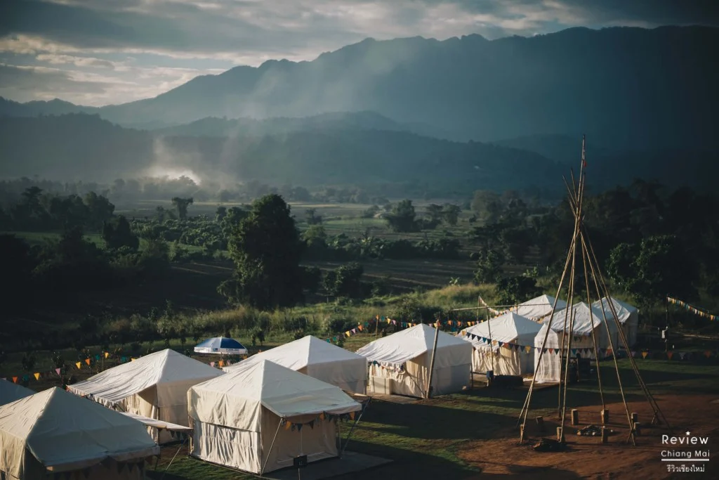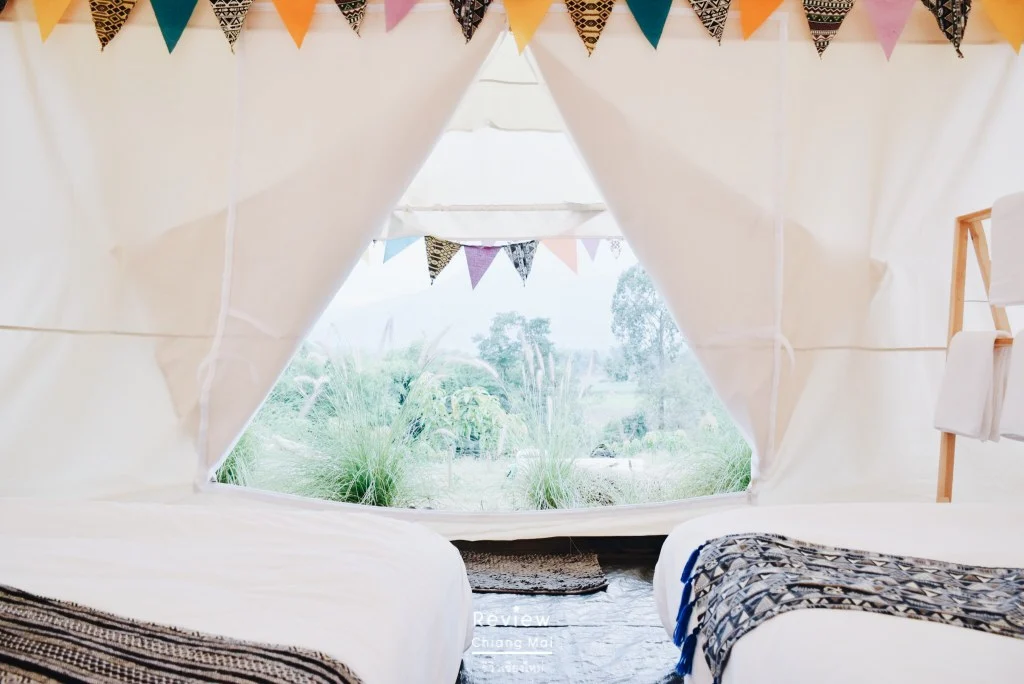 ⛰️ แกเอ้ยยย ดูวิวดิ เห็นดอยหลวงแบบชัดแจ๋ว หน้าแคมป์ก็เป็นไร่ เป็นป่า ไร้ตึกสูงบดบัง นั่งทั้งวันก็ฟินอ่ะ แถมยังได้นอนเต็นท์เท่ๆ อีกด้วย ? เรียกได้ว่าเป็นที่พักราคาหลักพันแต่วิวหลักล้านอ่ะ คุ้มเวอร์ ข้างในก็มีที่นอนนุ่มๆ สิ่งอำนวยความสะดวกต่างๆ ครบเลย ห้องน้ำเป็นห้องน้ำรวมมีน้ำอุ่นให้อาบ