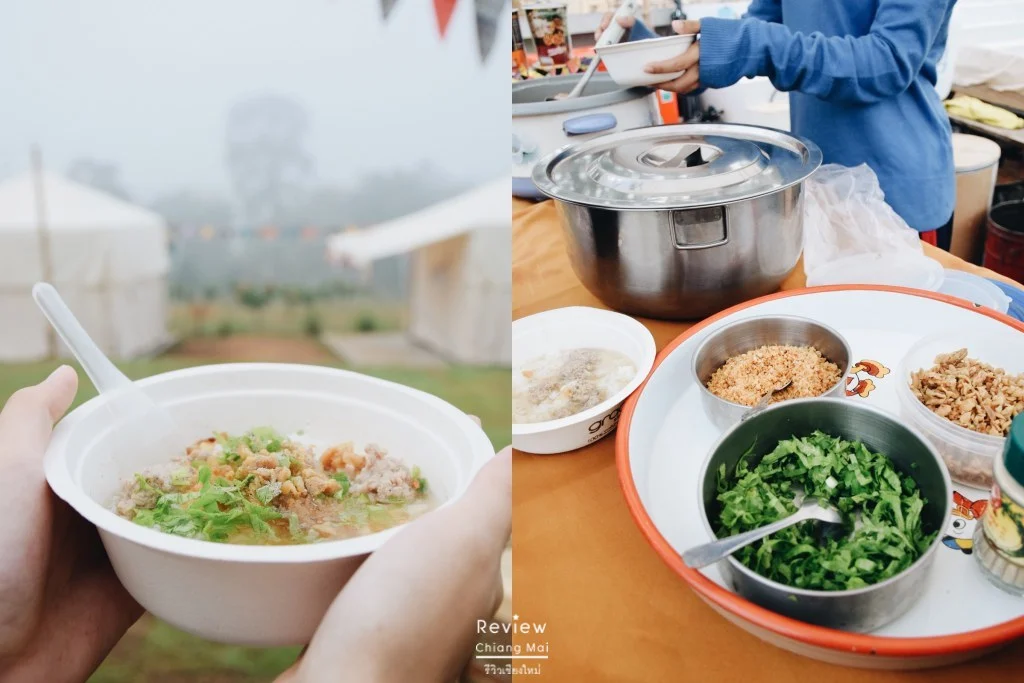ข้าวต้มร้อนๆ มาแล้ววว ใครอยากดื่มกาแฟ โอวัลติน ทางแคมป์ก็มีให้เน้อ