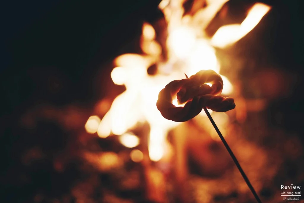 พอผ่านช่วง Star Moment ไปแล้ว ทางแคมป์ก็ได้ก่อกองไฟให้เราปิ้งมาชเมลโล่กัน จากนั้นเราก็อาบน้ำนอนเพราะพรุ่งนี้ตั้งใจจะตื่นเช้ามาดูหมอก