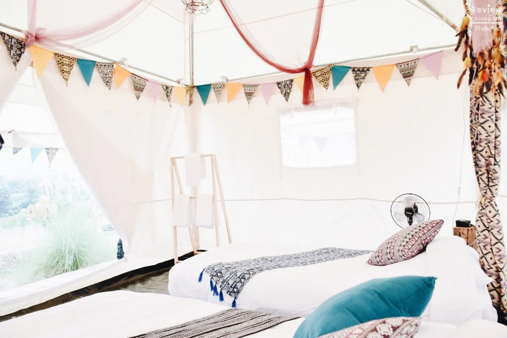 ห้องนอนสำหรับ 2 คน ตกแต่งแบบน่ารักมากก โบฮีเมียนสุดๆ ไม่ต้องกลัวหนาวเพราะเตียงนุ่มและผ้าห่มหนามากก หลับสนิทถึงเช้า