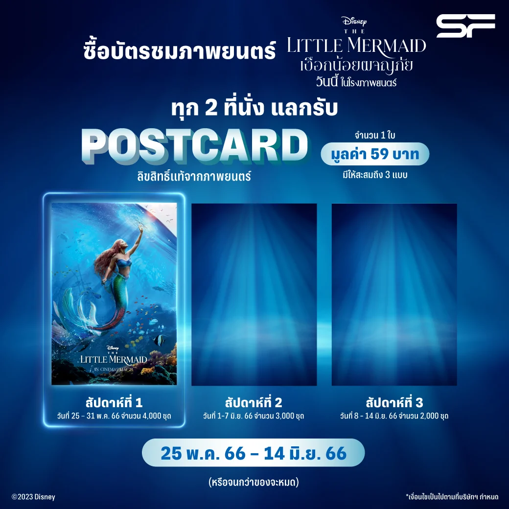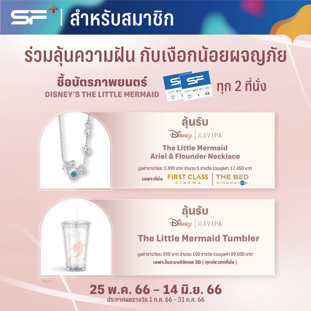 ดูเจ้าหญิงแอเรียล แบบสุดปัง พร้อมโปรสุดพิเศษ ที่ เอส เอฟ ระยะเวลาโปรโมชั่นตั้งแต่ 25 พ.ค. 66 – 14 มิ.ย. 66 (หรือตลอดโปรแกรมฉาย)