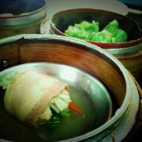 หลังจากผสมน้ำจิ้มสูตรลับเฉพาะเรียบร้อย ยังไม่ทันได้จิบน้ำชา พนักงานก็นำเอาติ่มซำที่เราเลือกมาวางเรียงรายเฉิดฉายอยู่บนโต๊ะ แต่ละเข่งควัยฉุยส่งกลิ่นหอมคลุ้ง ขนลุกชูชัน อยากยัดทั้งหมดตรงหน้าเข้าไปพร้อมกันเลยทีเดียว ติ่มซำที่ข้าพเจ้าเลือกมานั้น มักจะเป็นสิ่งที่ข้าพเจ้าชื่นชอบและทานอยู่เป็นประจำ หลังจากที่ลองมาแล้วเกือบทุกอย่างของร้านแห่งนี้