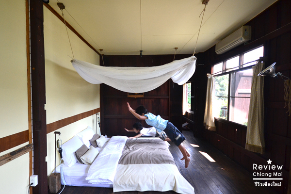 บริเวณชั้น 2 ด้านหน้าห้องนอน จะเป็นเหมือนกับห้องแต่งตัวของบ้านสมัยก่อน มีอุปกรณ์จัดวางไว้ให้ พร้อมราวและไม้แขวนผ้า ถัดไปด้านในคือห้องนอน ซึ่งกว้างขวาง เป็นพื้นไม้ และผนังไม้ทั้งหมด ที่นอนขนาดใหญ่ มีมุ้งไว้ให้ได้ใช้งานจริง เหมือนกับบ้านสมัยก่อน แถมมุมนั่งเล่น ที่ปูด้วยเสื่อและโต๊ะทำงาน ถูกจัดไว้อย่างน่ารัก ลงตัว