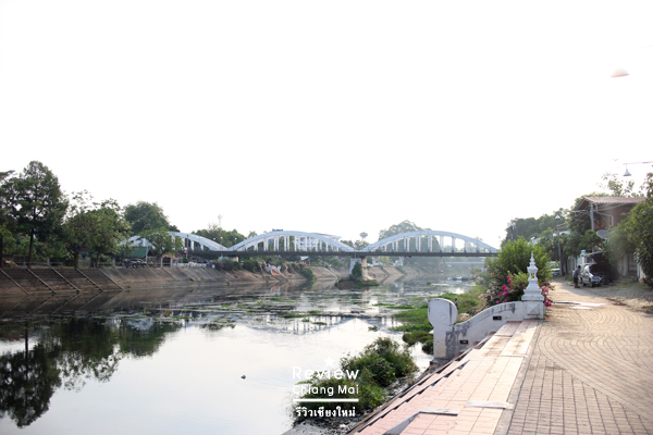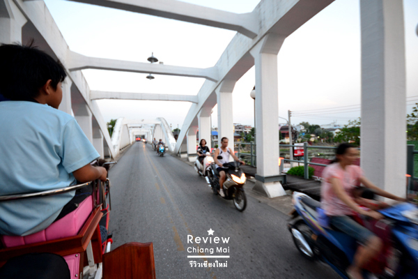 หกโมงครึ่ง แสงแดดรำไร จักรยานพร้อมที่หน้าสุดสะลี งานนี้เจ้าของที่พักลงมือลุยเป็นไกด์พาเราออกตระเวนอีกเช่นเคย แม้จะเป็นช่วงอากาศร้อน แต่ในตอนเช้าถือว่ากำลังสบาย รถราก็ไม่เยอะ เริ่มปั่นจากที่พักเลาะไปตามตรอกซอกซอย เพื่อมุ่งไปยังสะพานช้างเผือก ซึ่งถือเป็นจุดชมวิวที่สวยงามแห่งหนึ่งของที่นี่