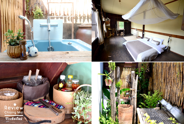 เราสามารถหุงหาอาหาร ทำครัวได้อย่างสะดวก เพราะมีอุปกรณ์ครบ ทั้งจาน ชาม หม้อ แก้วน้ำ ไมโครเวฟ แถมมีเตาถ่านให้เราได้ใช้จุดไฟทำอาหารได้อีกด้วย อีกมุมหนึ่งที่น่าสนใจคือบริเวณห้องน้ำ ซึ่งกว้างและโล่งสบาย แถมมีสวนหย่อมที่จัดไว้อย่างสวยงามบริเวณด้านนอกและอ่างอาบน้ำอีกด้วย เหมือนได้อาบน้ำกลางแจ้งเลยล่ะ