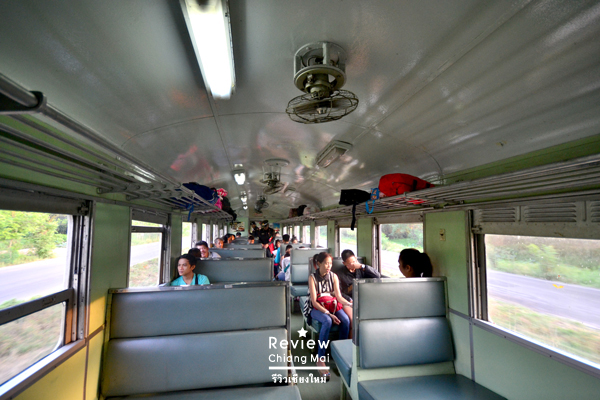 ภายในตู้โดยสาร ซึ่งแม้จะเป็นรถไฟฟรี แต่ก็ระบุเลขที่นั่งชัดเจน ผู้โดยสารเที่ยวนี้ไม่มากนัก