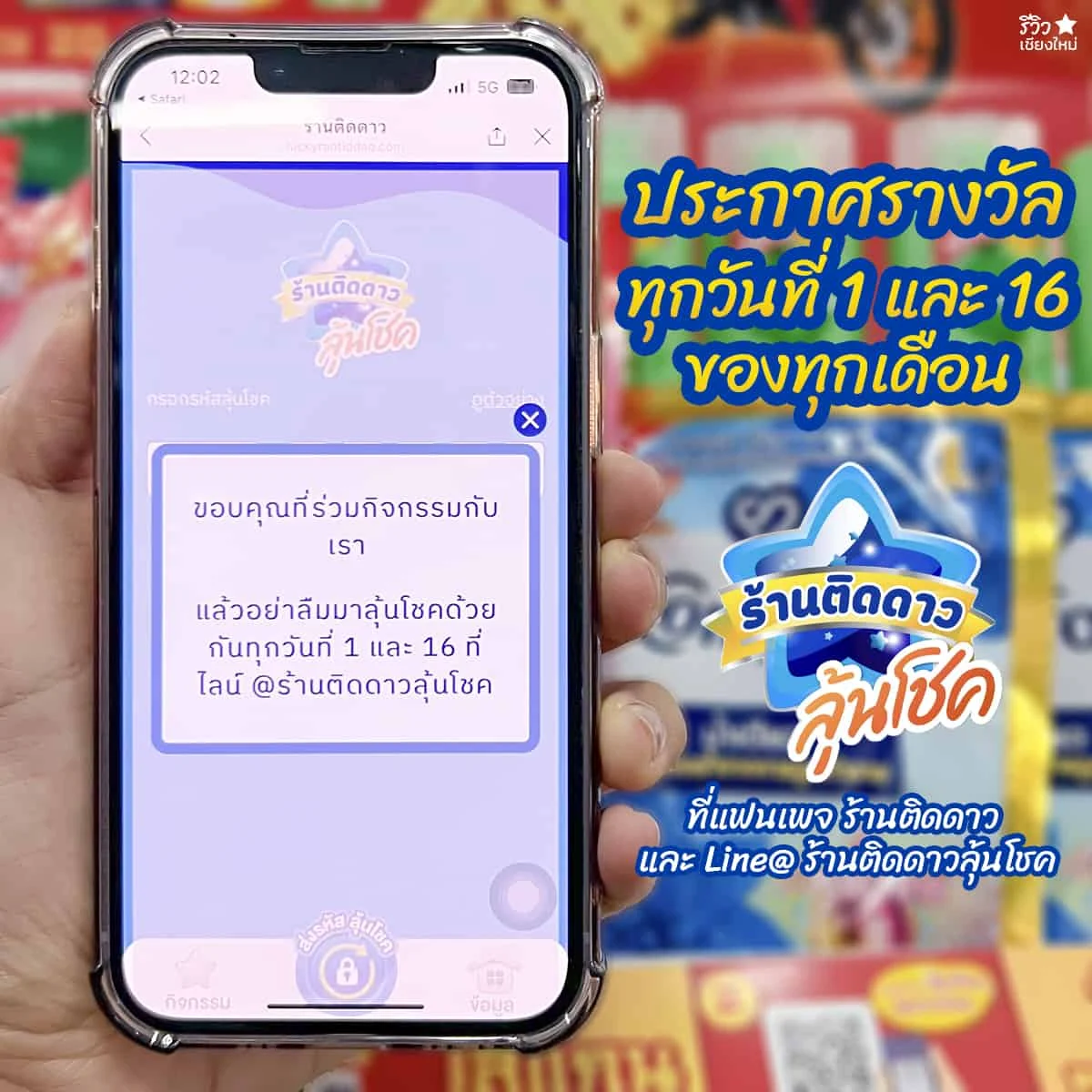 รอลุ้นได้เลย!! ประกาศรางวัลทุกวันที่ 1 และ 16 ของทุกเดือน ที่แฟนเพจ ร้านติดดาว และ Line@ ร้านติดดาวลุ้นโชค