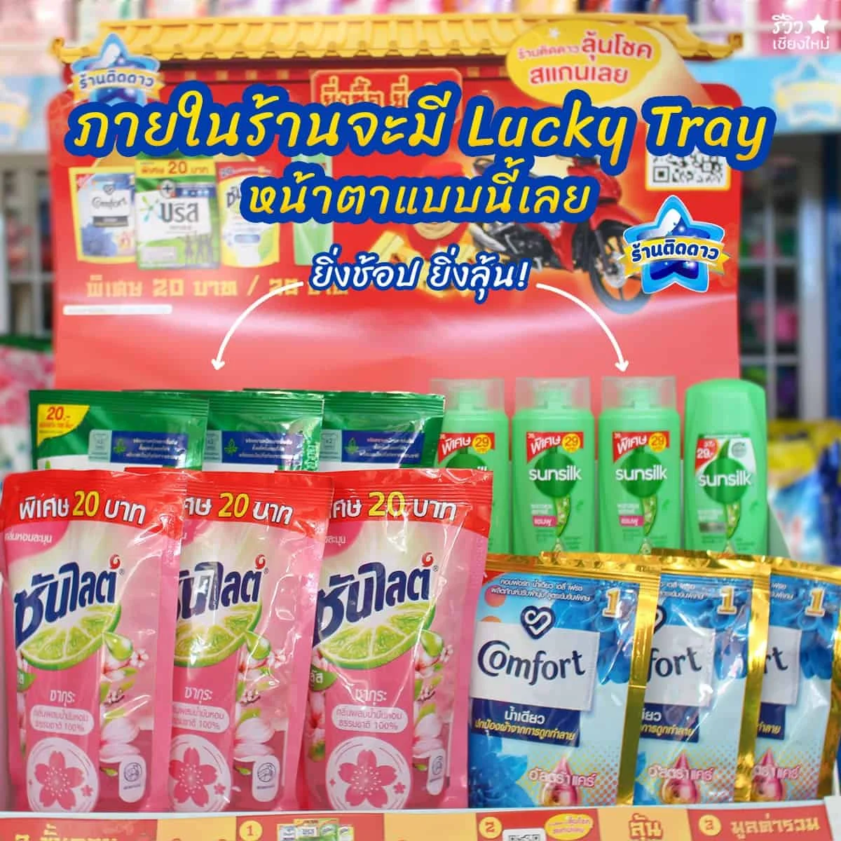เข้ามาในร้านจะเจอ Lucky Tray หน้าตาแบบนี้เลย มีสินค้าราคาพิเศษพร้อมให้ช้อป ยิ่งซื้อมาก ยิ่งลุ้นมาก!
