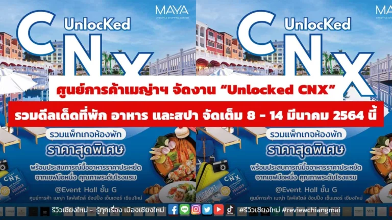 ศูนย์การค้าเมญ่าฯ ไลฟ์สไตล์ ช้อปปิ้ง เซ็นเตอร์ ร่วมกับ ผู้ประกอบธุรกิจโรงแรมและการท่องเที่ยว จัดงาน “ Unlocked CNX ” HOT Promotion from Luxurious Hotels in Chiang Mai กระตุ้นการท่องเที่ยวเตรียมคลายล็อกเปิดประเทศเดินหน้าเศรษฐกิจ