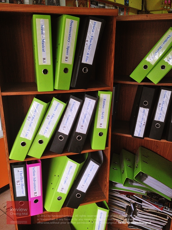 เมื่อวานกลับไปลองหาหนังมาเช่าดู เพราะแอบถ่ายภาพร้านนิดๆหน่อยๆ ตอนนี้สภาพร้านดูทรุดโทรมขึ้นเยอะครับ ฝุ่นจับเกาะเต็มไปหมด ปกหนังบางส่วนหายไปเยอะ แต่ถูกเรียงจัดไว้ในแฟ้มหนาปึ้ก พร้อมระบุแนว/ประเภทไว้อย่างเรียบร้อย ราคายังเท่าเดิม แต่มีแผ่นขายด้วย 60 บาทเท่านั้น