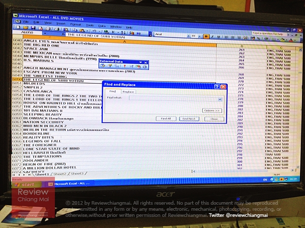 มีคอมให้ค้นชื่อหนังผ่านไฟล์ exel ร้านนี้หนังเยอะจริงครับ เอามากองโชว์ไม่หมด บางเรื่องแค่เฉพาะปกก็ถือเป็นทองคำแล้วครับ คือมันหาหายากมาก ต้องเก็บเข้ากรุ รักษาไว้เป็นสมบัติล้ำค่า