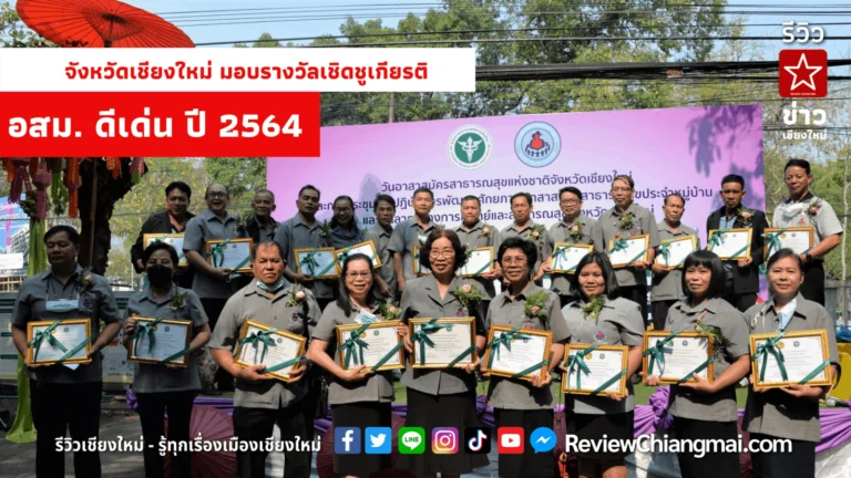 จังหวัดเชียงใหม่ จัดพิธีมอบรางวัลเชิดชูเกียรติสำหรับ อสม. ดีเด่น จังหวัดเชียงใหม่ จำนวน 11 สาขา เนื่องในวันอาสาสมัครสาธารณสุขแห่งชาติ ประจำปี 2564 ณ สำนักงานสาธารณสุขจังหวัดเชียงใหม่