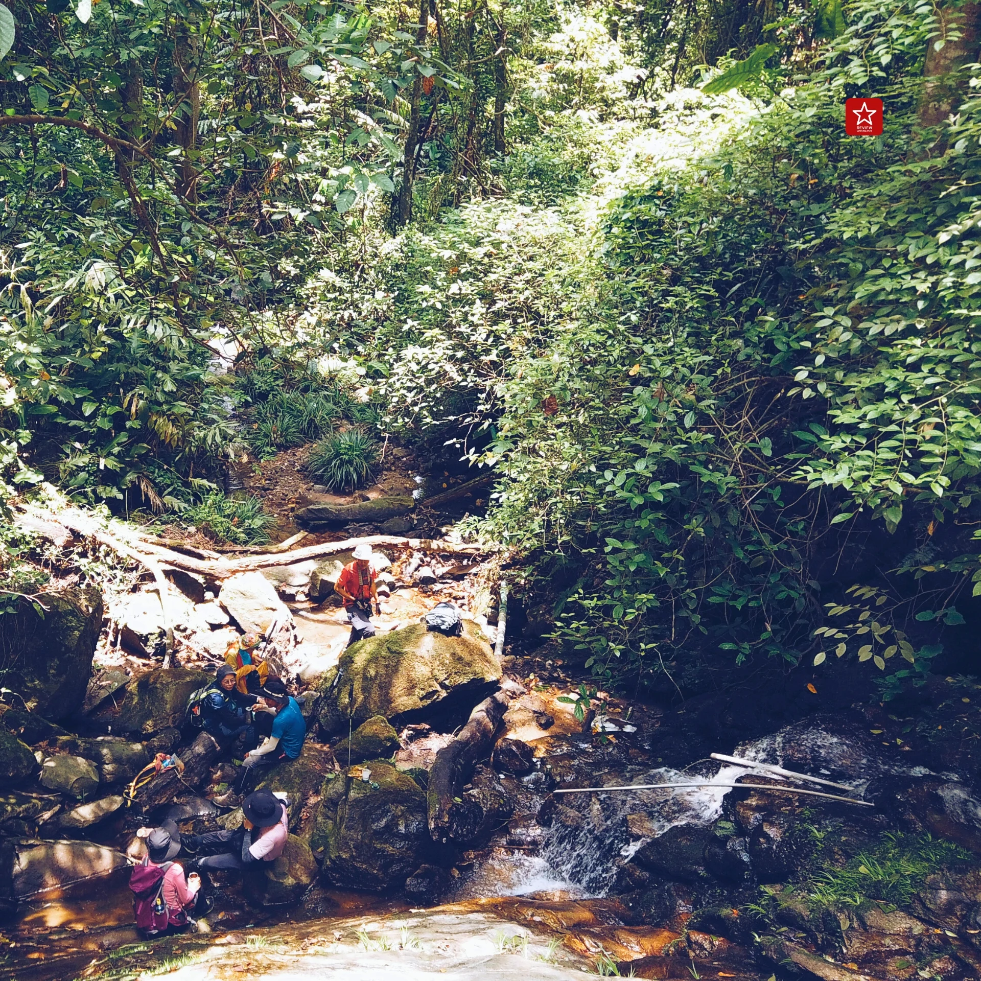 นั่งพักฟังเสียงน้ำตกกันชิลล์ๆ