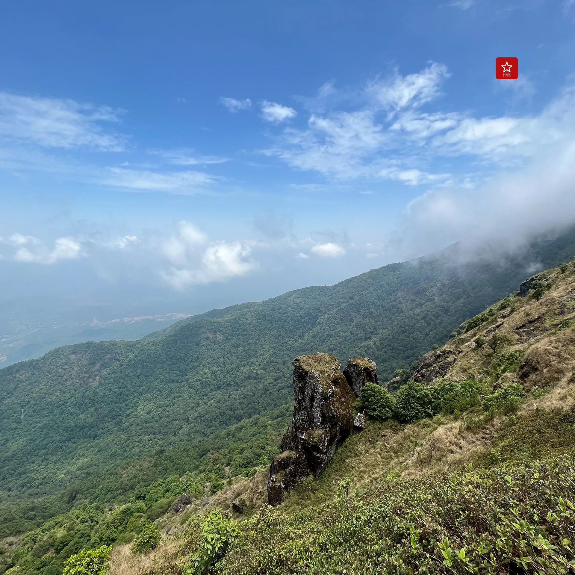 อีกจุดความสวยงามของที่นี่ “ผาแง่มน้อย” เคียงคู่จากความบังเอิญ ตอนแรกแอดก็ไม่ได้อะไรจนกระทั่งเดินไปดูตรงจุดชมผาแง่มน้อยนี่แหละ ได้เห็นวิวที่กว้างใหญ่ แต่มีหินคู่นี้ที่ดึงสายตาแอดอยู่ แอดว่ามันดูลงตัวและเข้ากับวิวทิวทัศน์มาก เป็นหินที่ร่วงตกลงมาคล้ายรูปหัวใจด้วยความบังเอิญ เลยเป็นหมุดหมายของคู่รักนักท่องเที่ยวที่มาเยือน