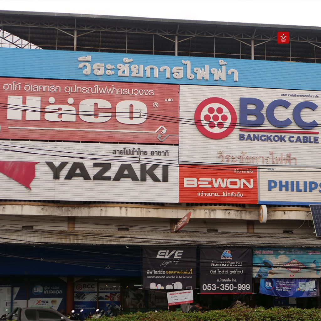 วีระชัยการไฟฟ้า ร้านขายอุปกรณ์ไฟฟ้าที่ครอบคลุมที่สุด เรียกได้ว่ามาที่นี่ที่เดียวทำระบบไฟบ้านทั้งหลังได้เลยที่ร้านเน้นความปลอดภัยของลูกค้ามาก จะขายเฉพาะของที่คุณภาพปานกลางจนถึงสูงเท่านั้น คุณภาพต่ำจะไม่เอามาขายเลย คุณนัทวิศวกรหนุ่มเจ้าของร้านบอกด้วยรอยยิ้ม