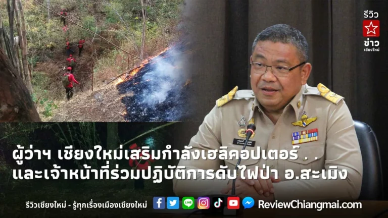 ไฟป่า สะเมิง ฝุ่นควัน ผู้ว่าราชการจังหวัดเชียงใหม่ เผยเสริมกำลังเฮลิคอปเตอร์และเจ้าหน้าที่ร่วมปฏิบัติการดับไฟป่าในพื้นที่อำเภอสะเมิงแล้ว คาดจะสามารถจำกัดพื้นที่เผาไหม้ได้ในวันนี้ แนะประชาชนดูและสุขภาพตนเอง และรับฟังข้อมูลข่าวสารจากทางราชการอย่างใกล้ชิด