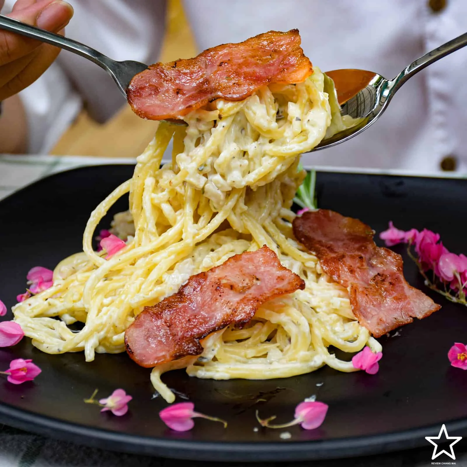นอกจากสไตล์การตกแต่งร้านที่สุดล้ำแล้วเมนูเครื่องดื่ม และอาหาร ของที่นี่ยังมีความครีเอทีฟแหวกแนวไม่เหมือนใคร อย่าง สปาเกตตีหม่าล่า ที่แอดชอบเป็นการส่วนตัว มันเผ็ดเด้าลิ้นดีจริงๆ