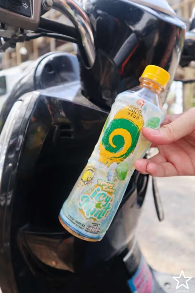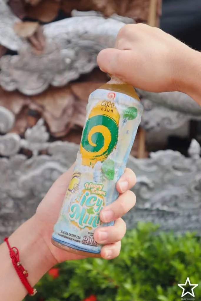 หลังจากเยี่ยมชมความงดงามของอุโบสถเงินแล้วก็ได้เวลาไปวัดต่อไป แต่ก่อนที่จะออกเดินทางกันต่อ ด้วยอากาศที่เริ่มร้อน เราเลยซื้อเครื่องดื่มเย็นๆ ติดมาด้วย “อิชิตัน ฮันนี่ เลมอน ไอซ์ซี่ มินต์” ชาเขียวรสน้ำผึ้งผสมมะนาวและมินต์ ดื่มแล้วสดชื่น ด้วยคลายร้อนได้เป็นอย่างดี หาซื้อได้ที่ 7-eleven เลยน้า