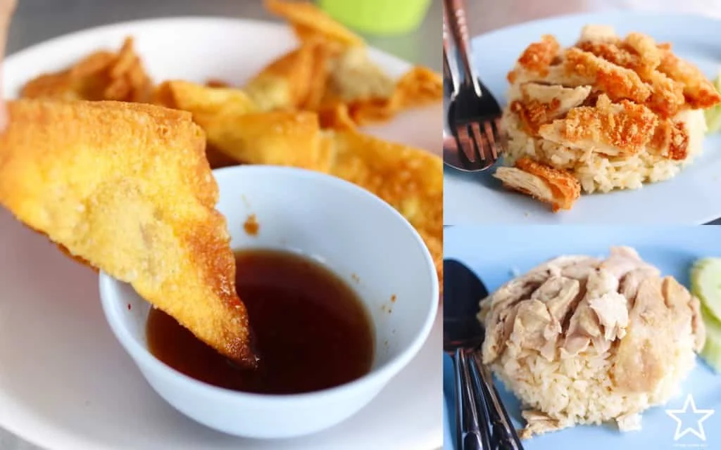 ถึงแล้ว ร้านข้าวมันไก่นันทาราม เปิดมานานกว่า 30 ปี ก่อตั้งเมื่อปี พ.ศ.2533 มีเมนูให้เลือกหลากหลายไม่ว่าจะเป็นข้าวมันไก่ต้ม ข้าวมันไก่ทอดหรือจะสั่งแบบรวมกันทั้งต้มทั้งทอดก็ได้ มีหมูสะเต๊ะและเกี๊ยวหมูกรอบๆ ด้วยนะ ข้าวมันไก่เริ่มต้นที่จานละ 40 บาท เกี๊ยวที่เห็นในรูปราคาเพียงจานละ 20 บาท แอบกระซิบดังๆ ว่าน้ำจิ้มเด็ดไม่แพ้น้ำจิ้มข้าวมันไก่เลยจ้า