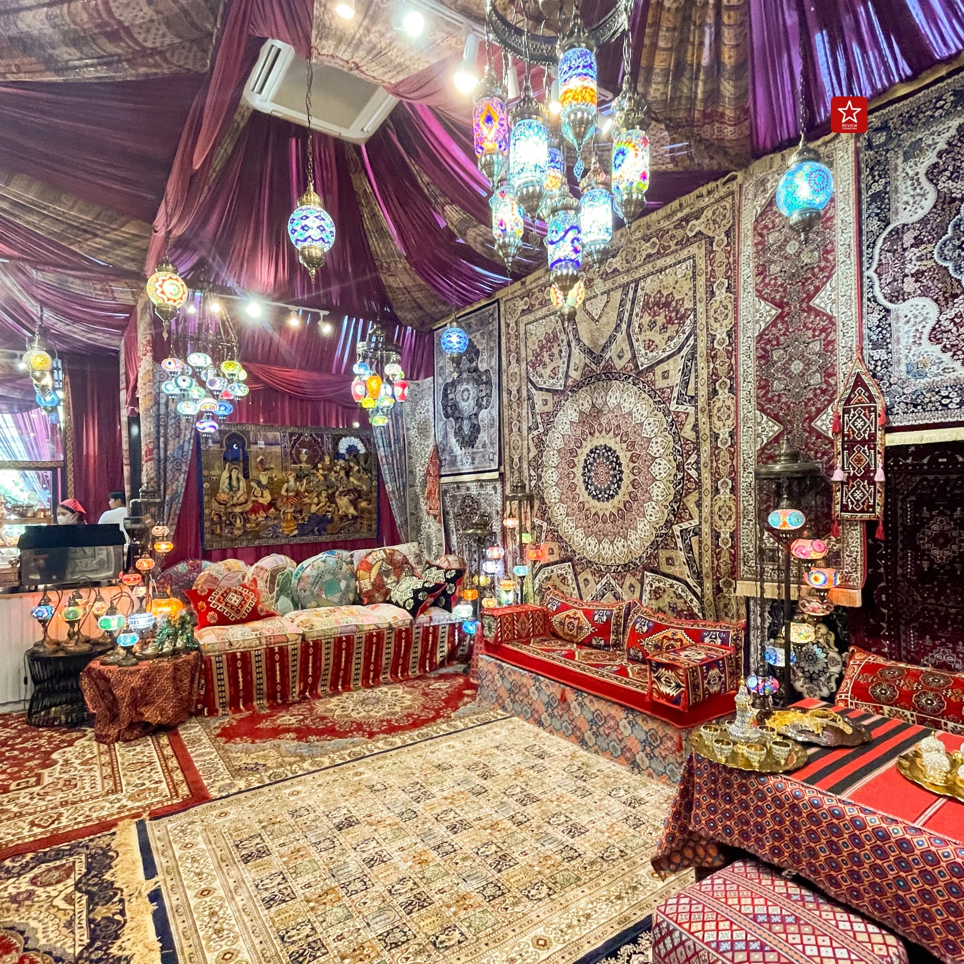 ชั้นที่ 2 เป็นคาเฟ่สไตล์ตุรกี ถือว่าจัดเต็มมากทางด้านการตกแต่ง เหมือนหลุดมาอีกประเทศหนึ่งเลยก็ว่าได้ ส่วนวัตถุดิบ เครื่องดื่ม ขนม อุปกรณ์ตกแต่ง หรือแม้แต่ของฝาก ก็นำเข้ามาจากตุรกีทั้งหมด
