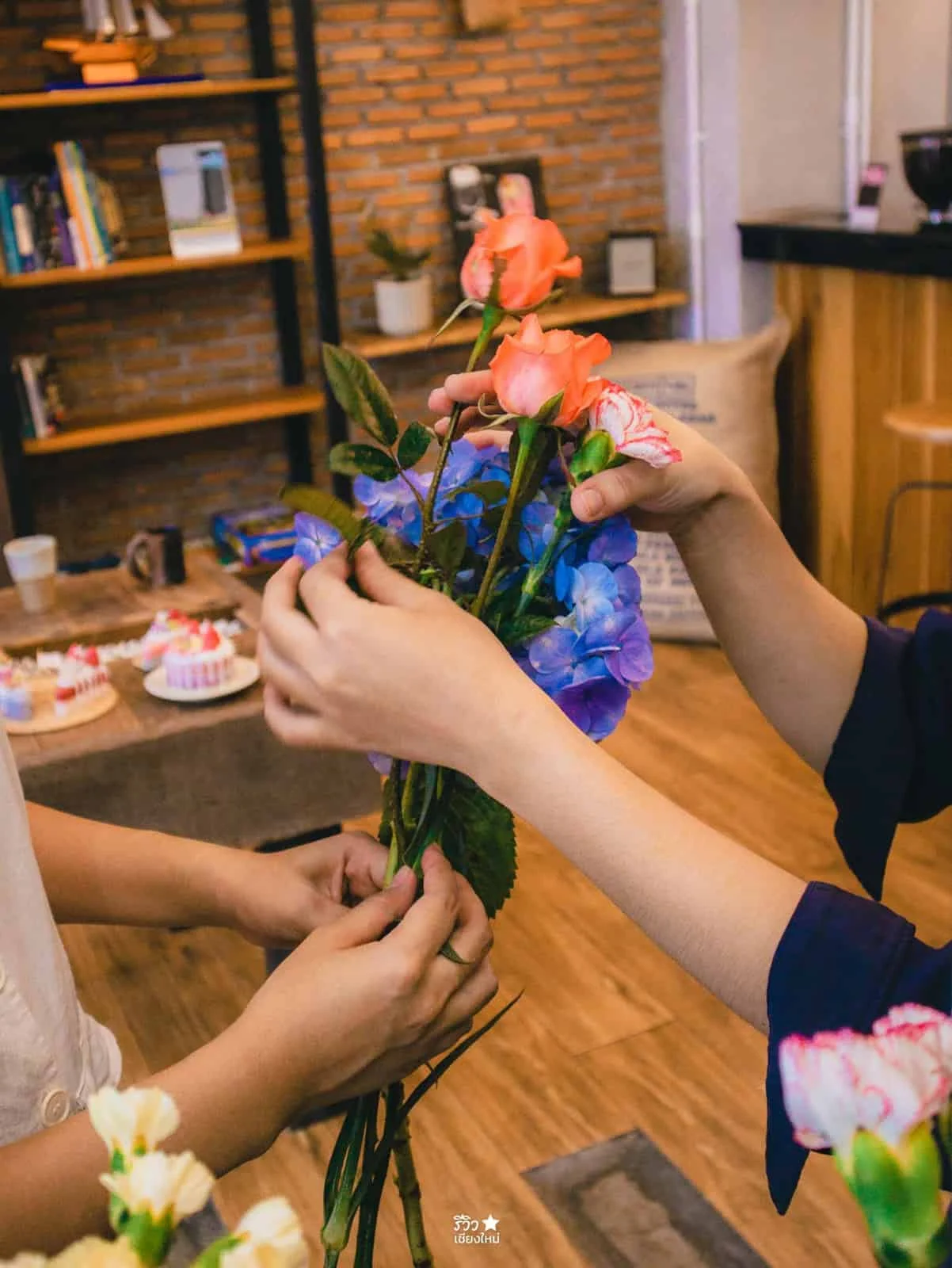 กิจกรรม Flower Bouquet Workshop กิจกรรมจัดดอกไม้ เหมาะกับใครที่ชอบแตกแต่งห้องที่บ้าน เพราะที่นี่ จะให้คำแนะนำ และสอนตั้งแต่ขั้นการของการเลือกดอกไม้ โทนสีของดอกไม้ และให้เราลองจัด จับคู่ดอกไม้ โทนสีของดอกไม้ ซึ่งสามารถนำไปใช้จริงๆ ที่บ้านได้เลยจ้าว
