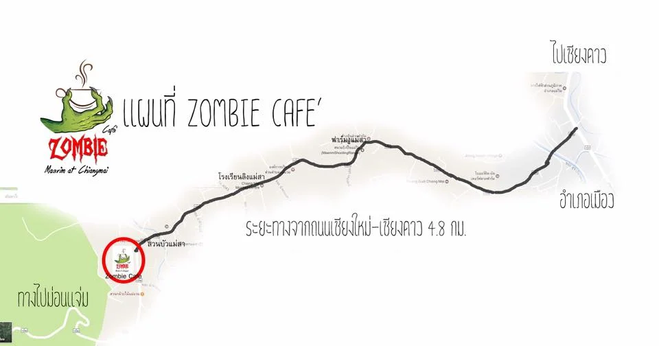 จากชื่อเรื่องวันนี้เจ๋งอยากพาพี่น้องนักชิมที่มีใจท่องเที่ยวไปลองบรรายากาศสุดชิลเกินจะบรรยายกับร้านเปิดใหม่ ระหว่างทางไป ม่อนแจ่ม ที่พี่น้องจะไม่เสียใจเลยถ้าได้ลองแวะพักกับร้าน ซอมบี้ คาเฟ่