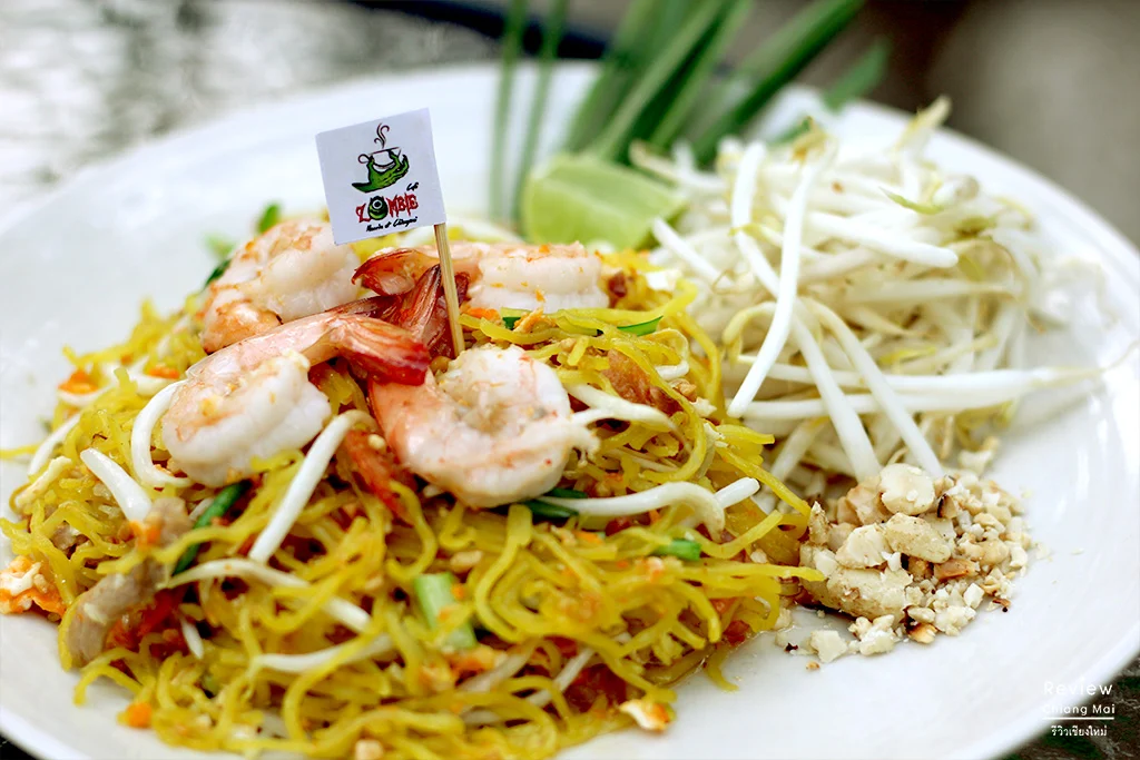 เมนูแรกจะแนะนำกันคือ ผัดซอมบี้ ที่นำเอาเส้นบะหมี่ มาผัดในสใตล์ผัดไทกุ้งสด ปรุงรสแบบกลมกล่อมละมุนละม่อม ผู้ใหญ่กินได้ เด็กๆกินดี