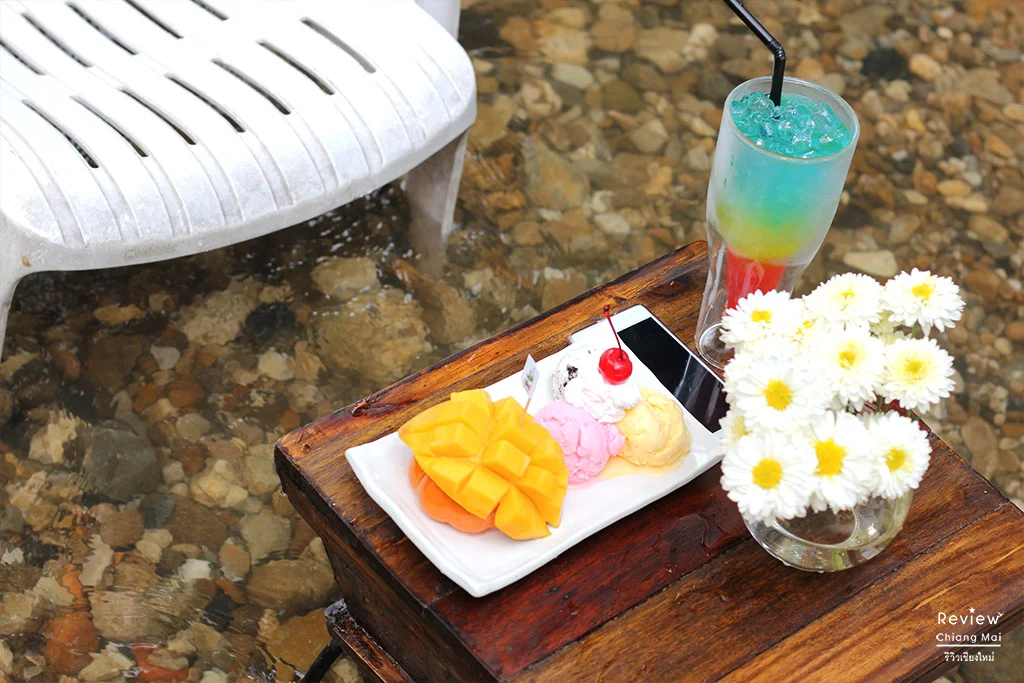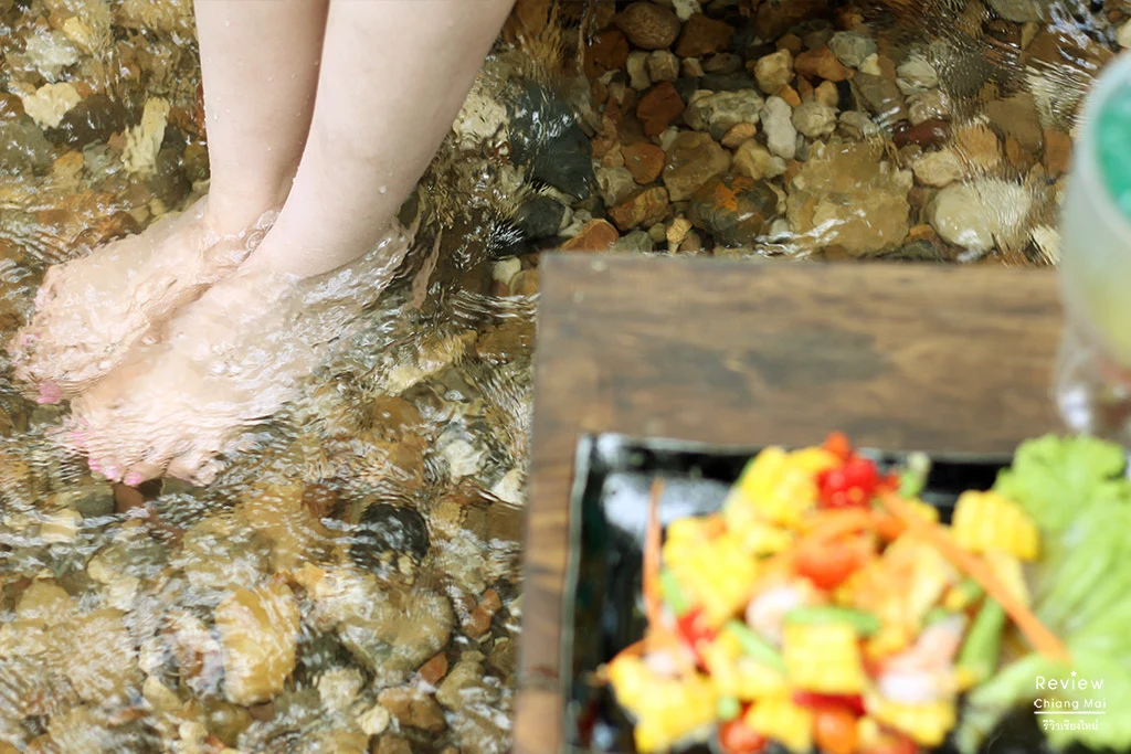 เก้าอี้นั่งสบายๆ เท้าแช่น้ำ จิบกาแฟ ชิมอาหารอร่อยๆ ฟังเสียงน้ำใหล ถ้าจะวัดกันเรื่องความชิลคงไม่มี ที่ไหนอีกแล้ว อาหารแนะนำของร้านก็มีเอกลักษณ์เกิดจากไอเดียสร้างสรรค์ล้วนๆ