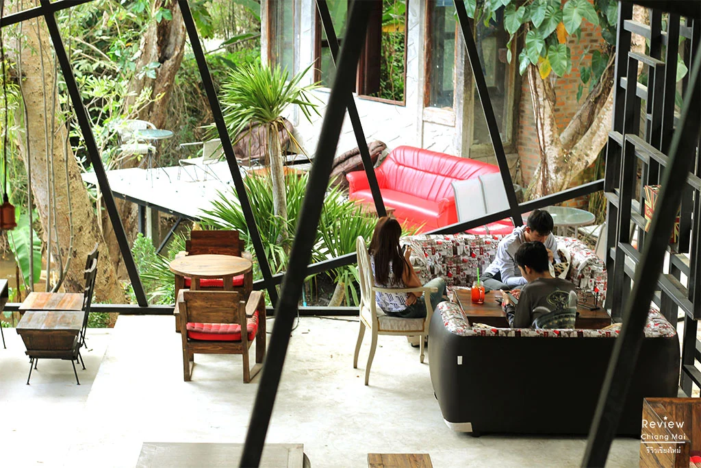 ทางเข้าเป็นกอไผ่และม่านไม้ เมื่อเดินเข้ามาจะได้ยินเสียงน้ำใหลจากลำธารมาต้อนรับ พร้อมกับตัวอาคาร ร้านกาแฟ ซอมบี้ มีต้นไม้น้อยใหญ่อยู่โดยรอบ ลำธารใหลผ่านด้านหน้าเหมือนกับว่าเราเข้ามาสู่ อีกโลกหนึ่ง ตัวอาคารมี 3 ชั้น เป็นการต่อเติมจากบ้านพักให้ได้มุมสุดชิลแบบเข้าถึง ธรรมชาติสุดๆ มีต้นไม้ใหญ่อยู่ทั้งด้านหน้าและหลังสร้างความร่มรื่นให้ทุกพื้นที่ของร้านจริงๆ